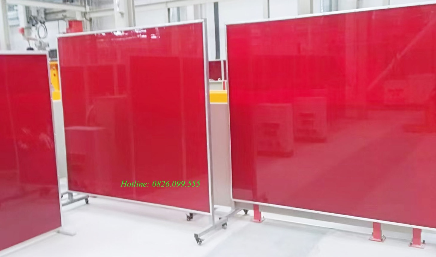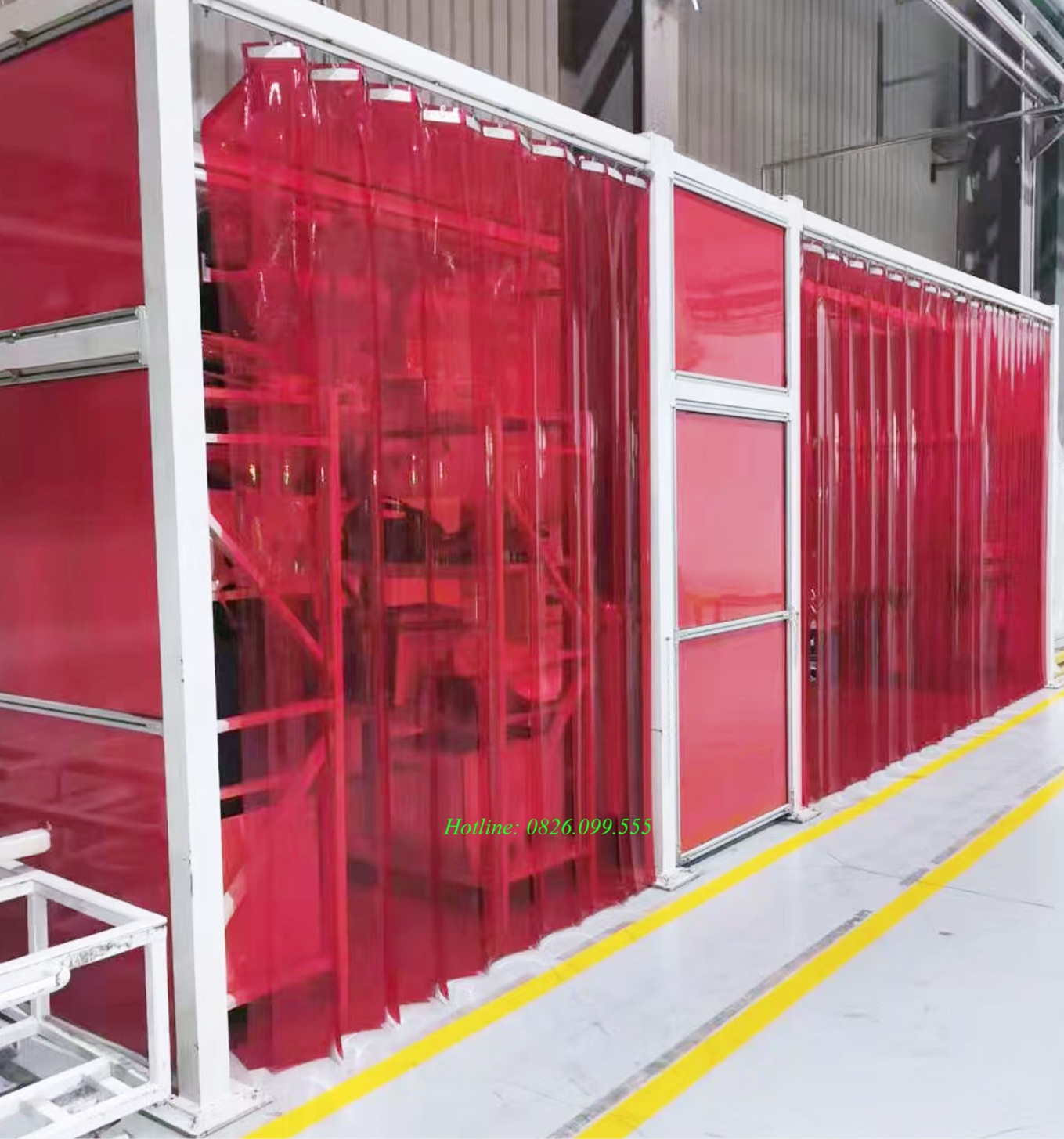 - Màng nhựa PVC mầu đỏ khổ lớn làm vách ngăn nhà xưởng, vạch nhựa chống tia lửa hàn di động. Màng PVC đỏ chống ngăn nhiệt bức xạ hồ quang điện hiệu quả an toàn